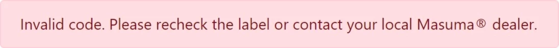 Если код не проходит проверку, отправьте фото упаковки с описанием, где и когда приобреталась деталь, на почту help@masuma.ru — мы разбираемся с каждым случаем индивидуально.