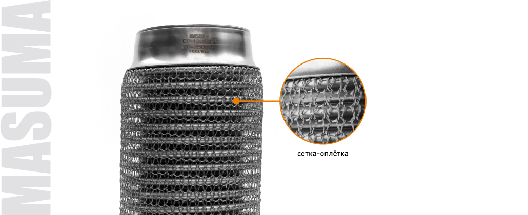 В линейке гофр глушителя Masuma пополнение: к хорошо известным конструкциям InnerBraid и InterLock добавились сетчатые гофры WireMesh (другие названия — Knitting Mesh, Knitted Mesh, «кольчуга», «гидра»).