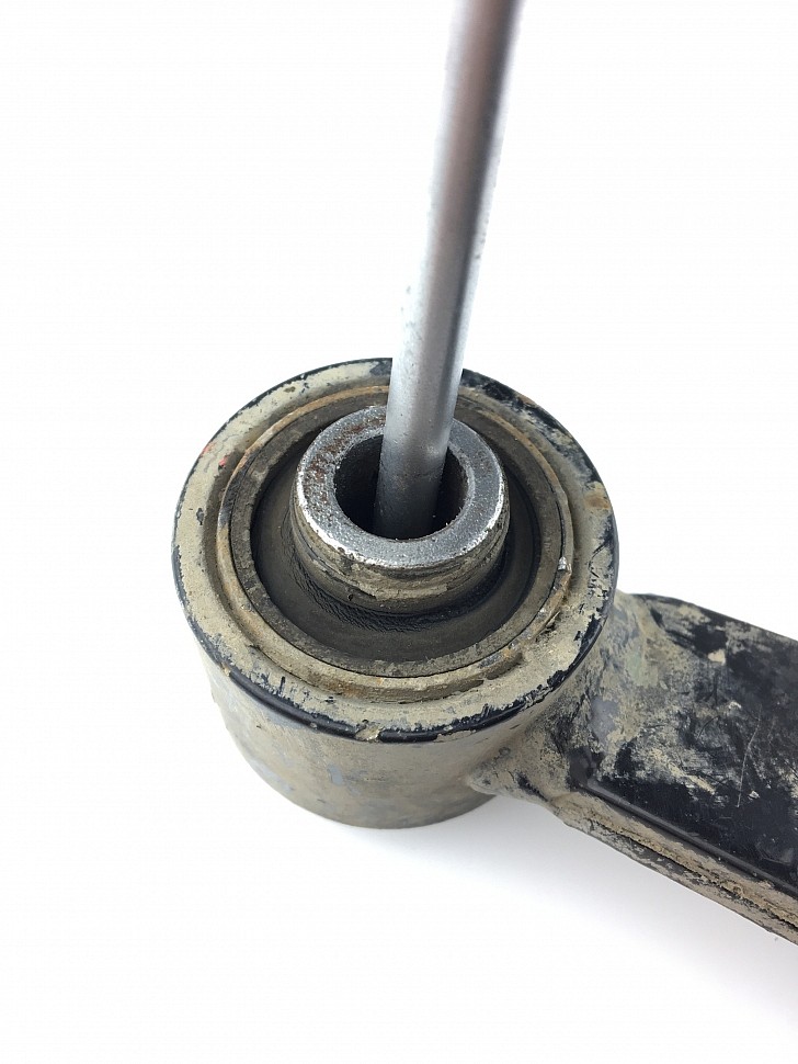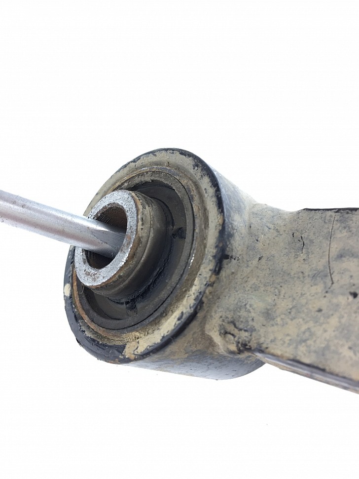Снятые тяги мы проверили на целостность. Оказалось, что трещины были поверхностные и не могли повлиять на ходовые качества автомобиля. По большому счету, замена была не нужна – целостность сайлентблока не нарушена.