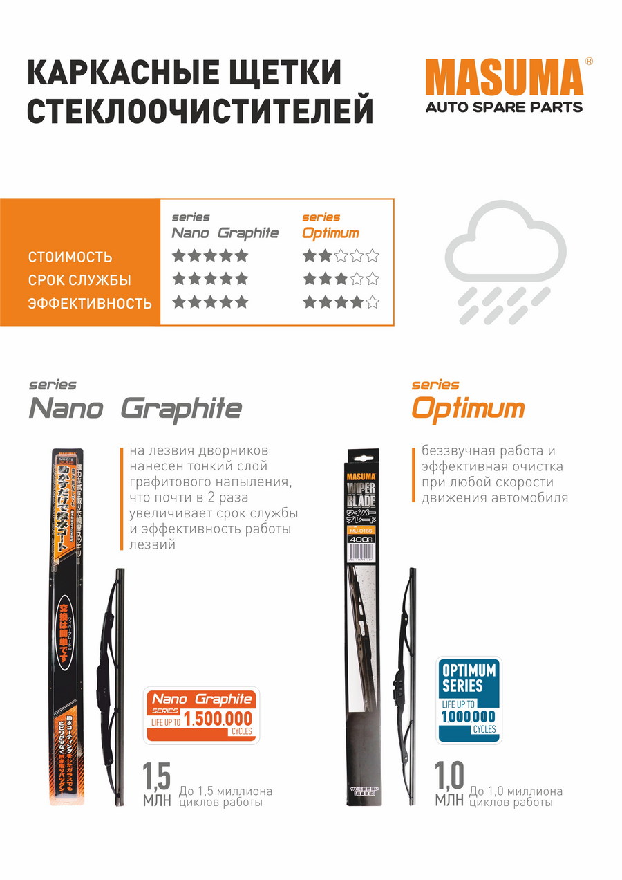 Серии каркасных щеток стеклоочистителей Masuma Nano Graphite и Optimum
