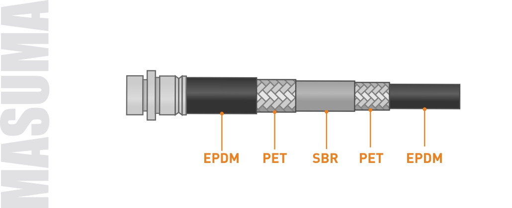 Тормозные шланги Masuma сконструированы по американскому стандарту SAE J1401 и состоят из 5 слоёв.