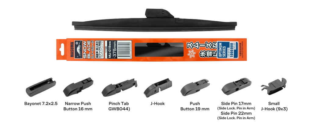 Optimum — стандартная серия зимних дворников от Masuma. Это универсальное решение для большинства автомобилей: в комплекте с каждой щёткой 7 адаптеров для стеклоочистителей большинства автомобилей.